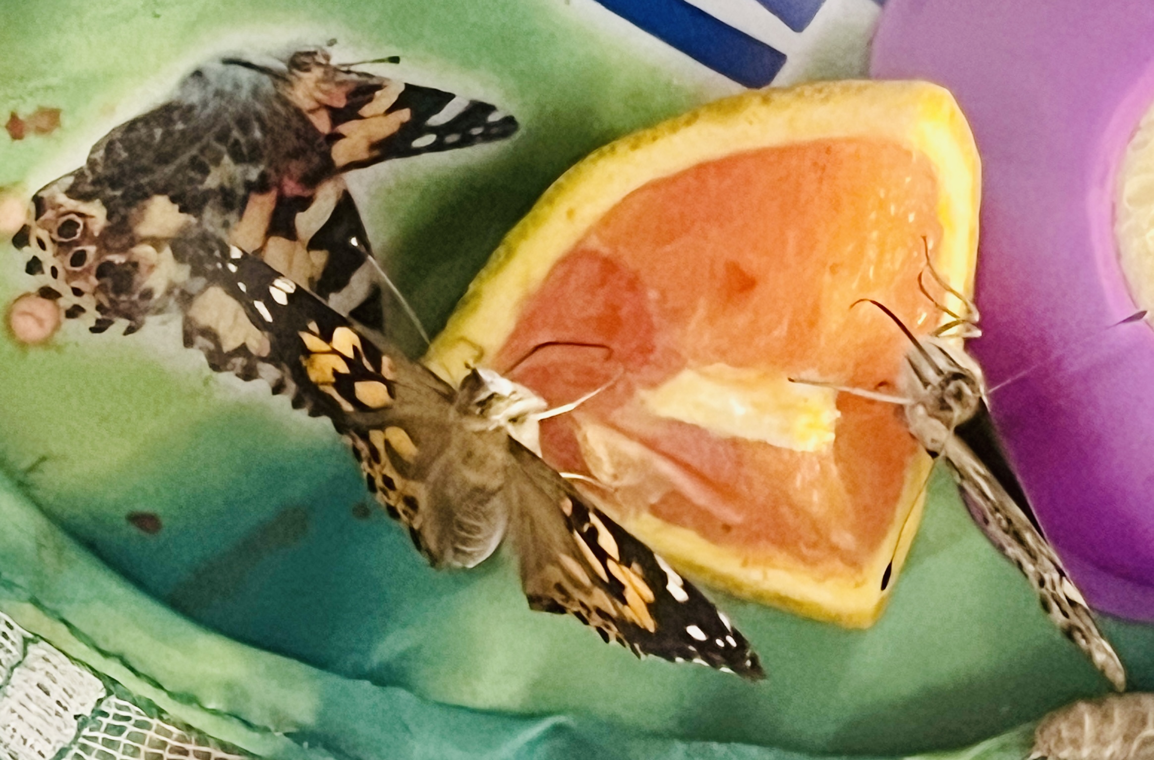 We do have one little butterfly still with us. She hasnāt shown signs of being ready to leave, and so weāre giving her the time she needs. My children named her Lola, and sheās become an honorary member of the family for now.