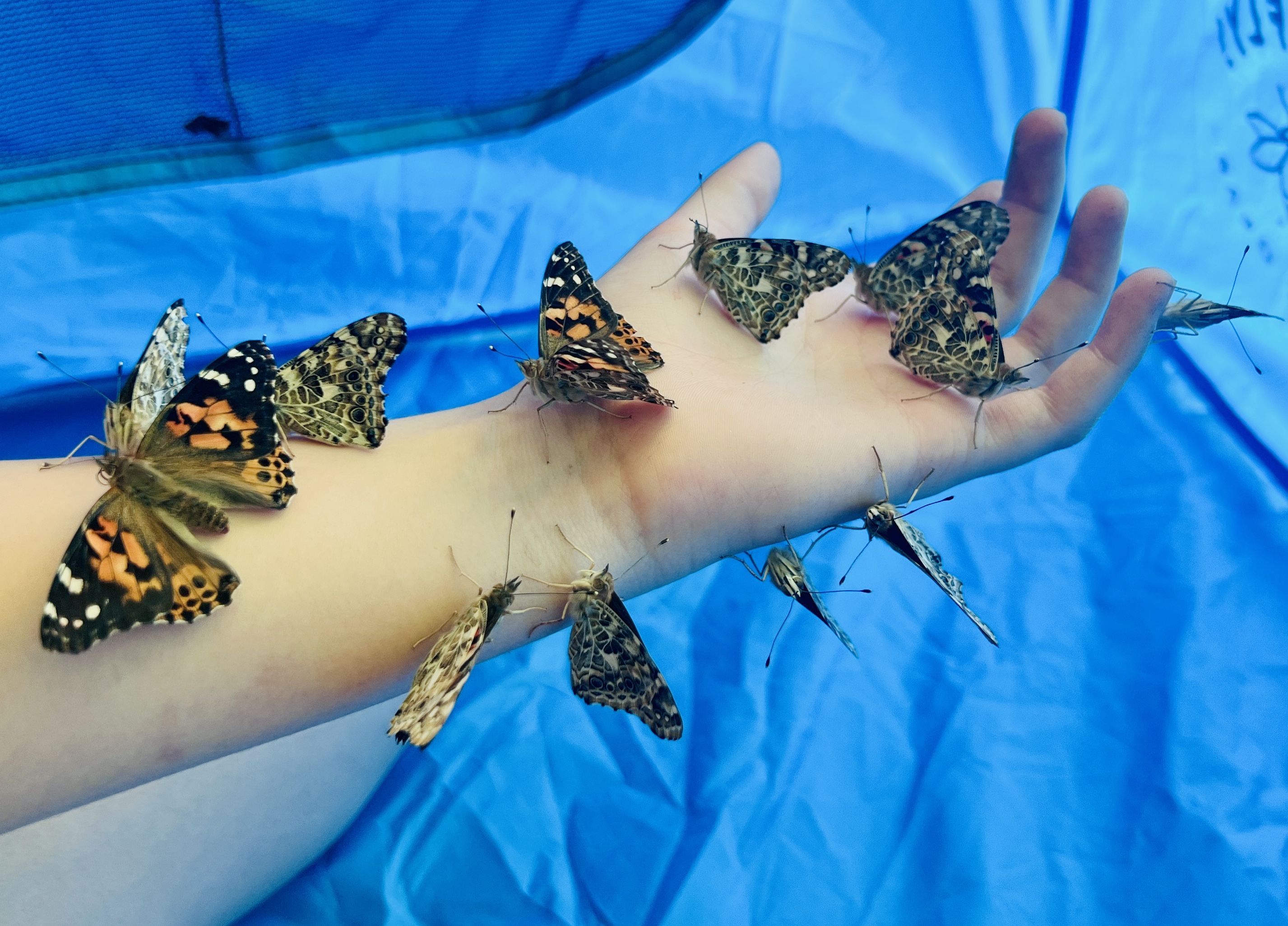 When we were ready, we carefully gathered the butterflies and opened the tent, letting them fly into our butterfly garden area, a dedicated space weāve cultivated with nectar-rich blooms just for this purpose. Some of the butterflies took flight immediately, off on their next adventure. Others lingered, happily settling among the flowers as if they knew this was home.