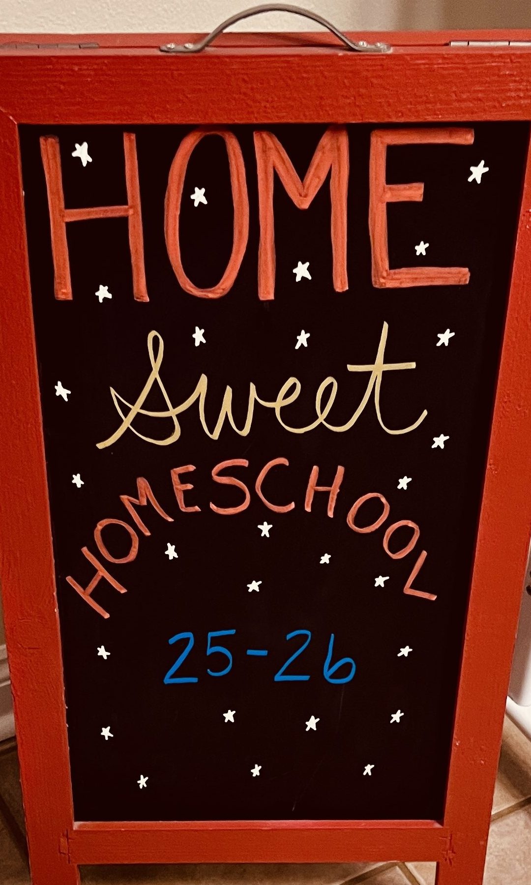 As our chalkboard declared: Home Sweet Homeschool 25–26. These walls will see knights defended, riddles solved, dragons defeated, and friendships forged in fictional and real-life adventures.