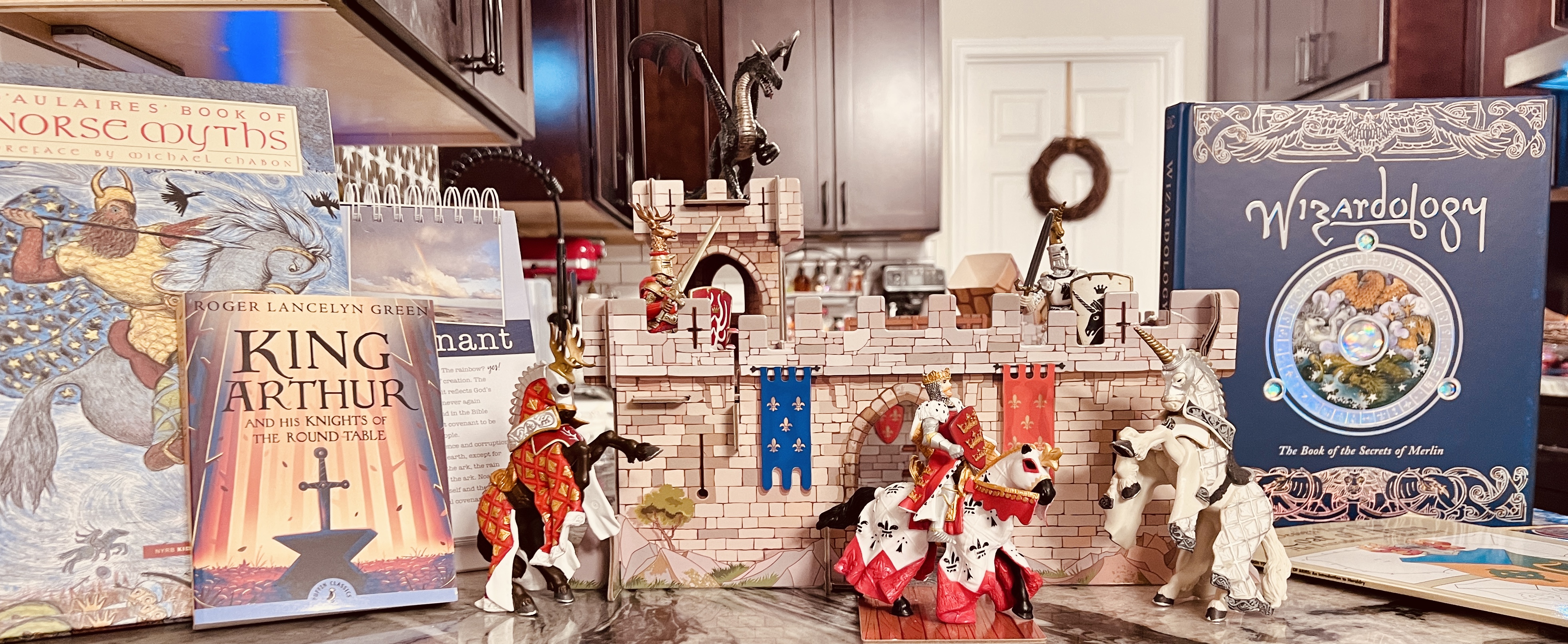 Our medieval corner stands ready: a sturdy castle with towers and gates, guarded by noble knights, and surrounded by stacks of books – Arthurian legends, Norse and Greek myths, and tales of magic and wonder. It will be here that we draw maps, reenact battles, and stage puppet plays; where we turn history into something you can touch, hear, and feel.