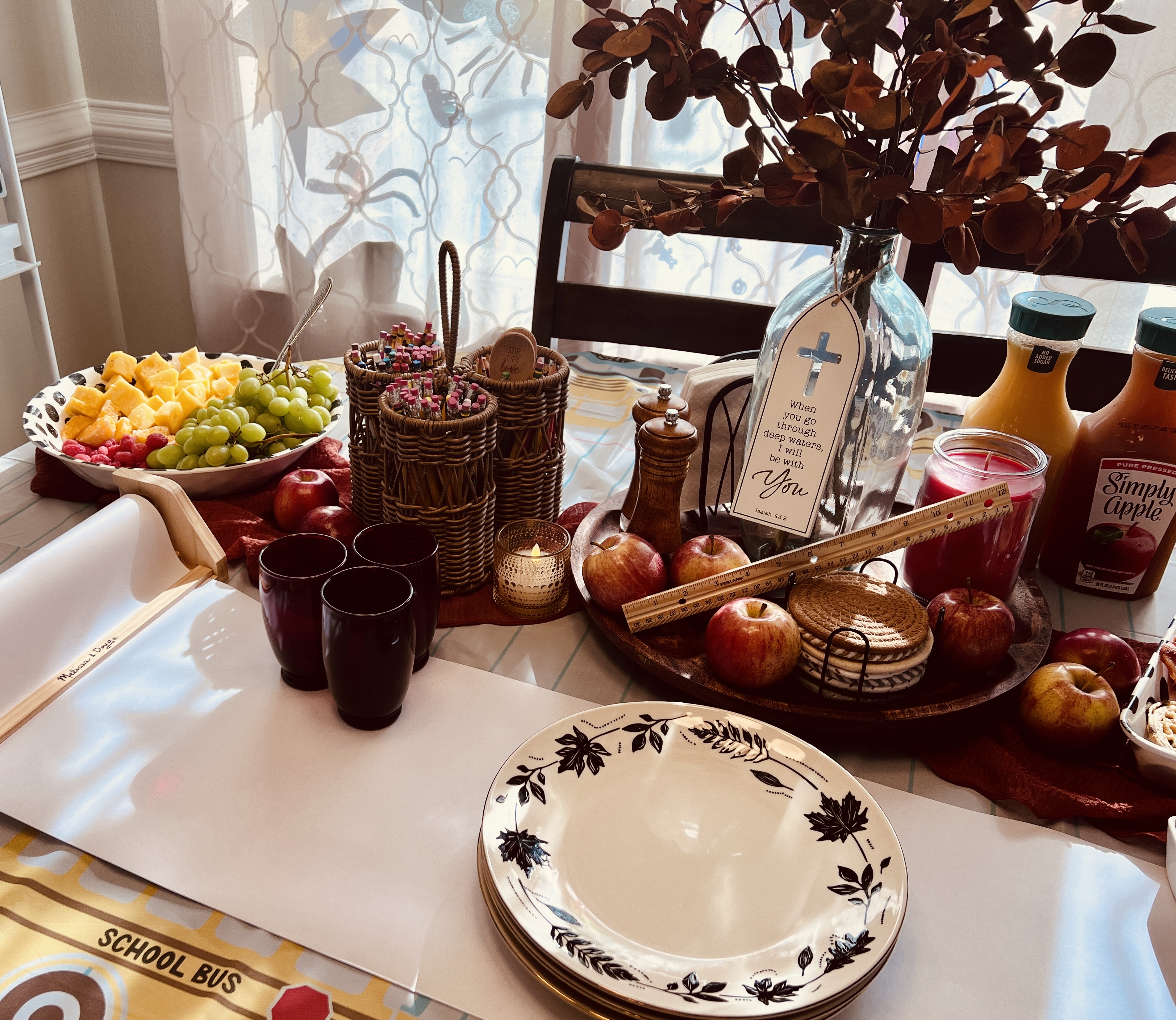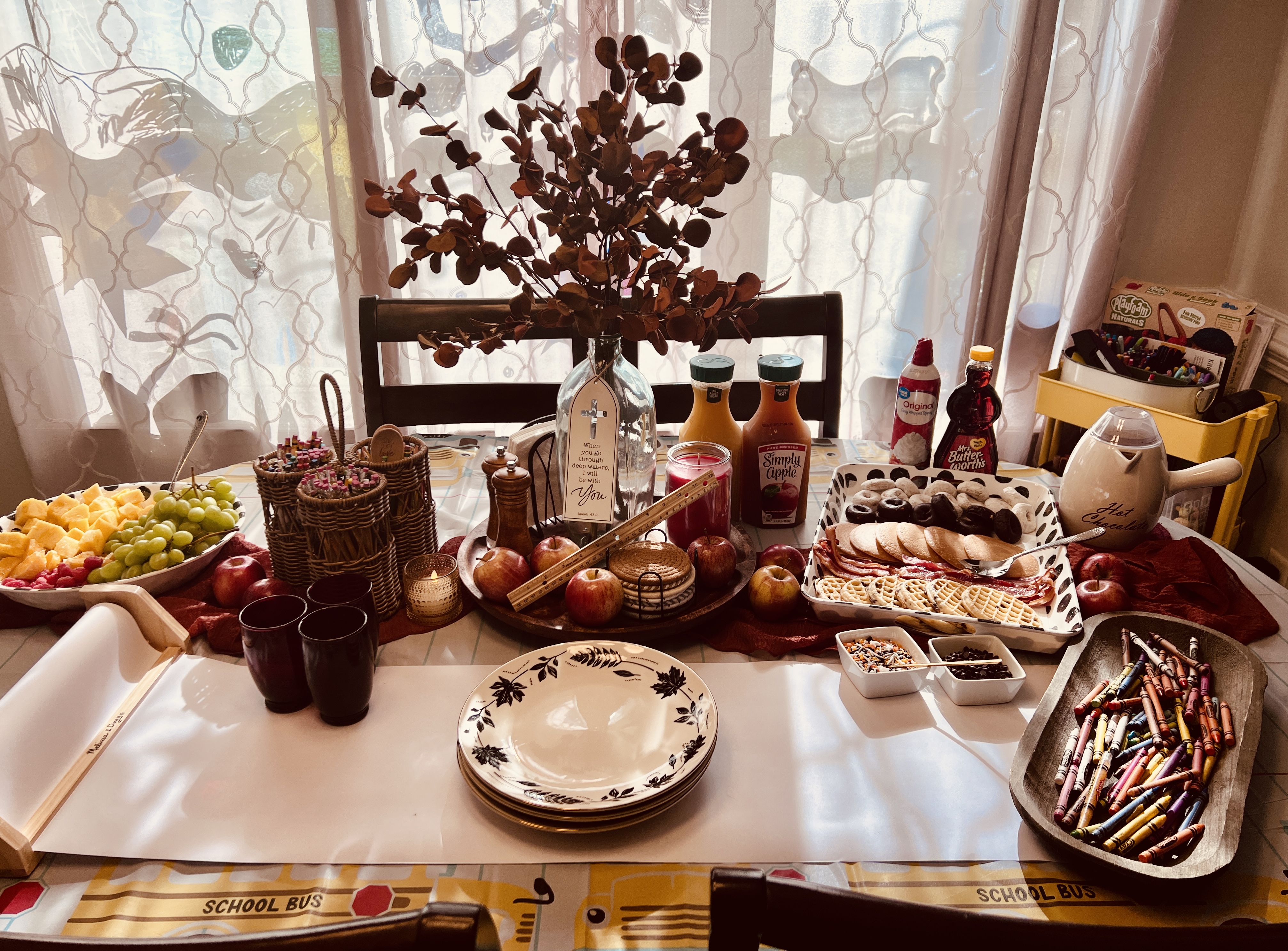 When the children walked into the dining room this morning, their eyes lit up. The table stretched before them like a scene from a storybook: